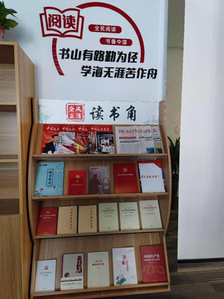 活動(dòng)開(kāi)展以來(lái),產(chǎn)發(fā)企管集團(tuán)各權(quán)屬企業(yè)高度重視,積極謀劃,認(rèn)真部署,在黨員活動(dòng)室、會(huì)議室及公共辦公區(qū)域等選擇適當(dāng)位置,因地制宜創(chuàng)建各具特色的廉潔讀書(shū)角。讀書(shū)角內(nèi)放置黨史類(lèi)、黨紀(jì)法規(guī)類(lèi)、反腐倡廉類(lèi)及紀(jì)檢監(jiān)察類(lèi)期刊等讀物,為干部職工提供了一個(gè)了解黨風(fēng)廉政建設(shè)、學(xué)習(xí)時(shí)政及黨紀(jì)法規(guī)、掌握中央八項(xiàng)規(guī)定精神、體驗(yàn)廉潔文化、感悟廉潔力量的重要窗口。讀書(shū)角周邊張貼“書(shū)香致遠(yuǎn)、清廉潤(rùn)心”“書(shū)香育廉、閱以修身”等各類(lèi)廉潔文化宣傳標(biāo)語(yǔ),營(yíng)造了濃厚的廉潔氛圍。