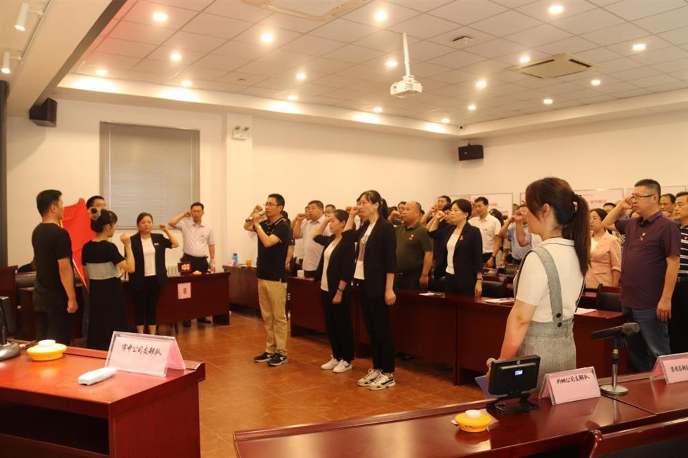 首先,在雄壯的國(guó)歌聲中,全體黨員齊聲高唱,氣氛非常熱烈。接下來,四名護(hù)旗手手持鮮紅的黨旗,在領(lǐng)誓員帶領(lǐng)下,新黨員進(jìn)行入黨宣誓,老黨員重溫入黨誓詞,黨委副書記馮秀娟為兩名新黨員佩戴了黨徽。隨后,餐飲支部李瓦寧進(jìn)行了精彩的黨課宣講。