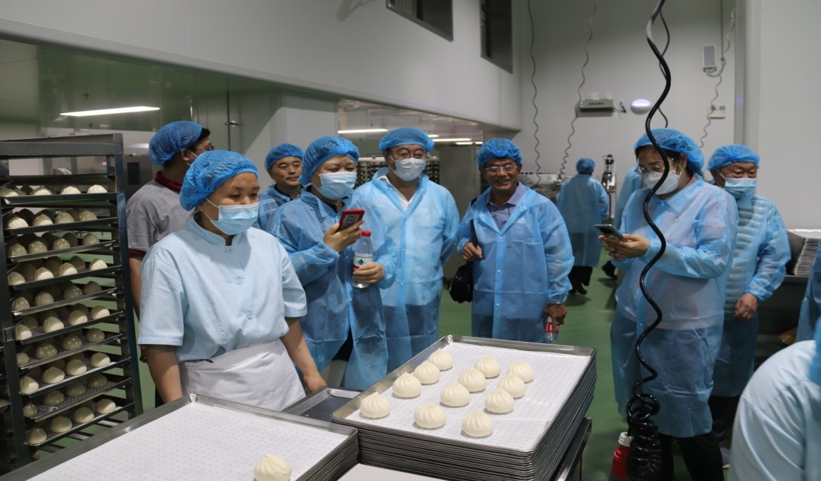 座談會(huì)召開(kāi)之前,王浩濤書(shū)記等領(lǐng)導(dǎo)帶領(lǐng)老黨員代表現(xiàn)場(chǎng)參觀了長(zhǎng)清食品產(chǎn)業(yè)園。在園區(qū)內(nèi)各生產(chǎn)車(chē)間現(xiàn)場(chǎng),寬敞明亮的車(chē)間環(huán)境、一排排整齊劃一的流水線設(shè)備,統(tǒng)一著裝精神抖擻的員工們,讓老黨員代表眼前一亮,心潮澎湃,感慨萬(wàn)千,大家感慨:金德利快餐終于從手工作坊跨越到現(xiàn)代化工廠生產(chǎn),這樣的改變是原來(lái)不敢想像的,大家對(duì)未來(lái)發(fā)展前景充滿(mǎn)信心和期待。