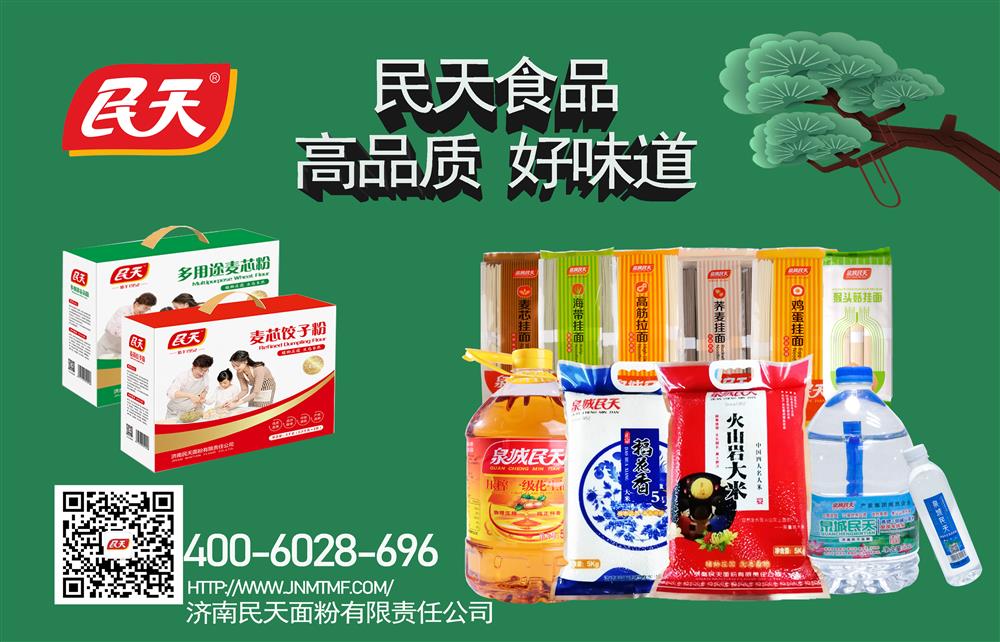 濟(jì)南民天面粉有限公司是隸屬于濟(jì)南產(chǎn)發(fā)集團(tuán)的三級(jí)全資公司,在濟(jì)南已有56年歷史,現(xiàn)在承擔(dān)濟(jì)南市應(yīng)急面粉儲(chǔ)備與配送任務(wù),已獲得山東老字號(hào),中國名牌,中國馳名商標(biāo),國家農(nóng)業(yè)產(chǎn)業(yè)化重點(diǎn)龍頭企業(yè),糧食行業(yè)功勛企業(yè),濟(jì)南市區(qū)域農(nóng)產(chǎn)品品牌“泉水人家”授權(quán)使用企業(yè)。現(xiàn)在面臨由單一等級(jí)面粉原料企業(yè)向食品深加工產(chǎn)業(yè)轉(zhuǎn)型的歷史節(jié)點(diǎn)。產(chǎn)品升級(jí):等級(jí)面粉向?qū)S妹娣凵?jí),面粉向深加工特色掛面、速凍濕面胚,速凍米面食品、烘培食品、速食蛋白沖調(diào)品、調(diào)味品、高鍶弱堿性山泉水、高端火山巖大米、稻花香五號(hào)大米,東北長粒香大米,月子小米、黃金小米、水餃粉,水餃調(diào)味料,水餃醋,水餃醬油,廚房專用水,保濕噴霧化妝離子水。