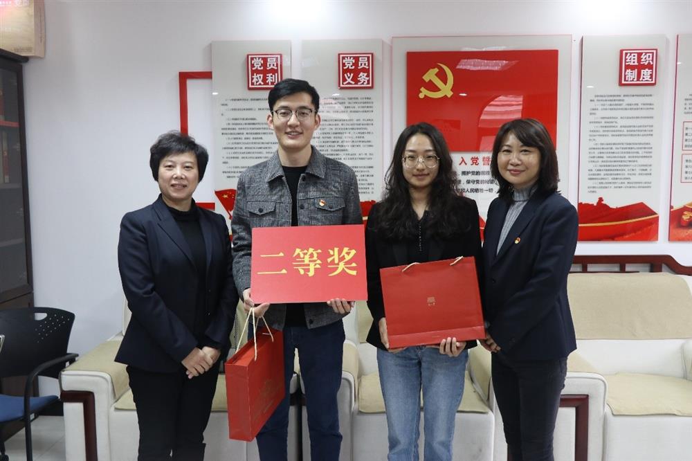 活動(dòng)共收到作品44份,其中攝影作品32份,詩(shī)歌等文章12篇。經(jīng)過(guò)評(píng)委會(huì)評(píng)選,最終評(píng)選出一等獎(jiǎng)1名,二等獎(jiǎng)2名,三等獎(jiǎng)3名。10月29日,院黨總支舉行了頒獎(jiǎng)儀式,由黨總支書記朱詠梅同志和工會(huì)主席黃健為獲獎(jiǎng)?wù)哳C獎(jiǎng),并鼓勵(lì)全體職工積極參與院組織的各項(xiàng)活動(dòng),豐富職工業(yè)余文化生活,為全體員工創(chuàng)造積極向上、和諧團(tuán)結(jié)的工作氛圍。